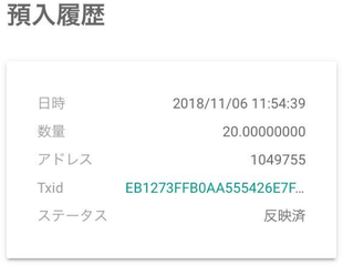入金アドレス送って